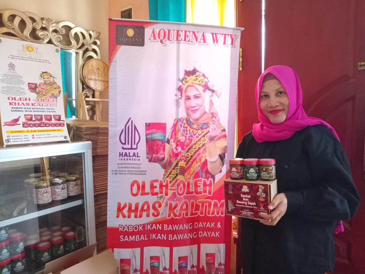 “Saya melihat produk UMKM yang ada di Kaltim belum ada makanan yang mengunakan bawang Dayak, Jadi yang pertama mengeluarkan adalah agueena Indonesia aljaya group mengeluarkan olahan ikan yaitu Rabuk ikan bawang Dayak dan sambal ikan bawaan Dayak,” ujar Wiwit kepada media ini saat ditemui di rumah produksi PT Aqueena Indonesia Aljaya di Jalan A.W. Syahrani, Gang Pandan Mekar No.15, Kelurahan Air Hitam, Kecamatan Samarinda Ulu, Selasa (27/01/2026).