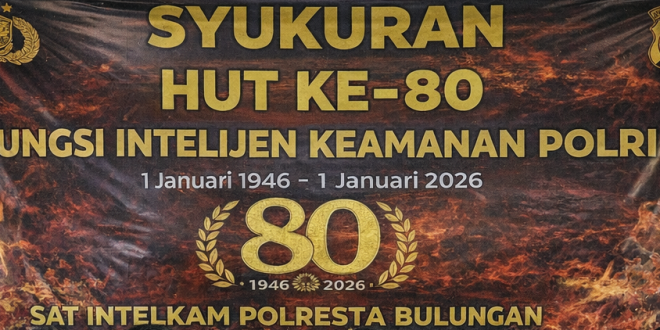 Kapolresta Bulungan Kombes Pol Rofikoh Yunianto melalui Kasi Humas Polresta Bulungan Aipda Hadi Purnomo menyampaikan bahwa peringatan HUT ke-80 Intelijen Keamanan Polri menjadi momentum penting untuk melakukan refleksi dan evaluasi kinerja.