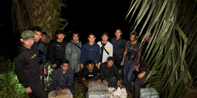 Nunukan – Tim Patroli Gabungan SSK II Yonkav 13/SL, TDM Batt 3 RAMD dan Satgas Gabungan Intelijen (SGI) berhasil menggagalkan upaya penyelundupan minuman keras ilegal di perbatasan Indonesia-Malaysia, Km 7, Desa Sekaduyan Taka, Kec. Seimanggaris, Kabupaten Nunukan, Kalimantan Utara, Sabtu (27/12/25).