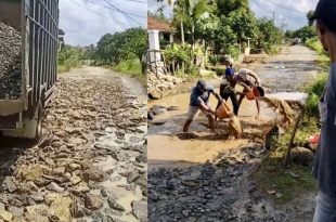 LAMPUNG – Sejumlah sopir truk di Kabupaten Way Kanan, Lampung, bergotong-royong memperbaiki jalan rusak yang sudah lama dibiarkan tanpa perbaikan oleh pemerintah daerah. Perbaikan dilakukan secara swadaya dengan menggunakan material seadanya yang mereka bawa sendiri dari truk masing-masing. Dalam lima video yang ada, tampak para sopir menguras air yang menggenangi lubang jalan …