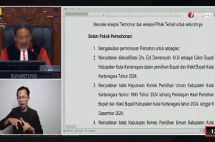 KUTAI KARTANEGARA – Mahkamah Konstitusi (MK) telah mengabulkan sebagian permohonan dari Pasangan Calon Nomor Urut 03, Dendi Suryadi dan Alif Turiadi, yang meminta agar Edi Damansyah didiskualifikasi sebagai calon bupati dalam Pilkada Kutai Kartanegara 2024. Dengan didiskualifikasinya Calon Bupati Nomor Urut 3, maka Majelis Hakim Konstitusi juga membatalkan keputusan Komisi …