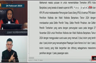 JAKARTA – Keputusan yang ditunggu warga Banjarbaru, khususnya terkait perselisihan hasil Pemilihan Walikota dan Wakil Walikota Banjarbaru 2024, akhirnya diumumkan. Mahkamah Konstitusi (MK) memutuskan untuk mengabulkan permohonan perkara tersebut. Putusan ini dibacakan dalam sidang terbuka yang disiarkan secara langsung melalui beberapa saluran televisi pada Senin (25/02/2025) pagi di Ruang Sidang …