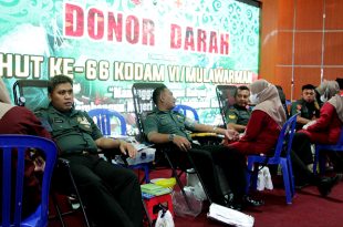 TANGGARONG – PERINGATI Hari Ulang Tahun (HUT) Komando Daerah Militer (Kodam) VI/Mulawarman ke-66 tahun 2024, Komando Distrik Militer (Kodim) 0906/Kkr menggelar kegiatan donor darah yang diikuti oleh prajurit, Persit, Aparatur Sipil Negara (ASN) dan instansi di lingkungan Pemerintah Kabupaten (Pemkab) Kutai Kartanegara (Kukar). Kegiatan yang dilaksanakan di Aula Darmawangsa, Markas …