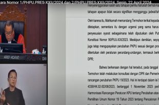 JAKARTA – Sidang putusan terkait perkara Perselisihan Hasil Pemilihan Umum (PHPU) oleh Mahkamah Konstitusi (MK). Adapun berlangsung siaran langsung sidang sengketa Pilpres 2024 ini telah dimulai sejak pukul 09.00 WIB pada Senin (22/4/2024). Sidang perkara Nomor 1/PHPU.PRES-XXII/2024 dan 2/PHPU.PRES-XXII/2024 ini dipimpin oleh Ketua MK, Suhartoyo dan 7 hakim lainnya. Pada gugatannya, kubu …