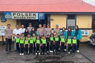KUTAI BARAT – Kepolisian Sektor (Polsek) Muara Pahu menerima kunjungan edukatif dari siswa Taman Kanak-kanak (TK) Anggrek Merah pada Jumat, (06/02/2026). Kegiatan ini digelar sebagai upaya pengenalan tugas-tugas kepolisian sekaligus menanamkan pemahaman mengenai keamanan dan ketertiban masyarakat (kamtibmas) sejak usia dini. Kunjungan yang berlangsung di Mapolsek Muara Pahu itu disambut …