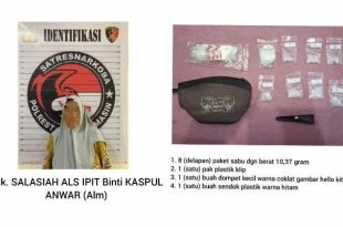 BANJARMASIN – Seorang perempuan berinisial S (52), ditangkap Satuan Reserse Narkoba (Satresnarkoba) Kepolisian Resor Kota (Polresta) Banjarmasin karena kedapatan menyimpan narkotika jenis sabu. Perempuan setengah baya warga Jalan Kelayan B, Gang Gembira Kelurahan (Kel.) Kelayan Kecamatan (Kec.) Banjarmasin Selatan itu ditangkap dengan barang bukit 8 paket sabu dengan berat keseluruhan …