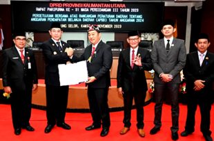BULUNGAN – DEWAN Perwakilan Rakyat Daerah (DPRD) Provinsi Kalimantan Utara (Kaltara) bersama Pemerintah Provinsi (Pemprov) Kaltara menyetujui Rancangan Peraturan Daerah (Raperda) tentang Anggaran Pendapatan dan Belanja Daerah (APBD) Provinsi Kaltara tahun anggaran 2024 disahkan menjadi Peraturan Daerah (Perda). Adapun APBD 2024 yang disetujui tersebut sebesar Rp 3.494.591.835.909. Persetujuan DPRD bersama …