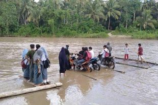 SULAWESI BARAT – Banjir yang menerjang Desa Kalumammang di Polewali Mandar (Polman), Sulawesi Barat (Sulbar) akibat meluapnya Sungai Mombi mengakibatkan jembatan penghubung di dua dusun terputus. Akibatnya ada 151 kepala keluarga (KK) terisolir dan 6 ternak sapi milik warga hanyut terseret banjir. “Jembatan Sungai Mombi yang meluap kondisinya terputus …