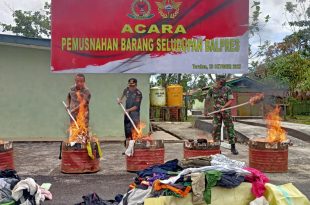 TARAKAN – Sebanyak 32 balpres berisi pakaian bekas asal Tawau, Malaysia dimusnahkan dengan cara dibakar oleh pihak Bea dan Cukai Tarakan serta Kodim 0907/Tarakan, Selasa ( 25/10/2022 ). “Pengangkut dan pemilik balpres ini tidak ditemukan dan kondisi tak bertuan di dekat galangan kapal di Kelurahan Juata,” kata Pasi Intel Kodim …
