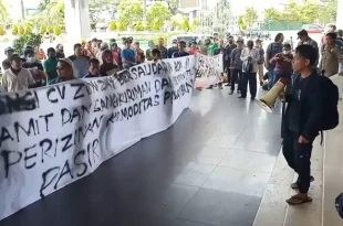 PASER – Ratusan warga dari dua desa di Kabupaten Paser Paser yang tergabung dalam Koalisi Warga Penyedot Pasir Sungai Kandilo, menggelar aksi unjukrasa menuntut aktivitas penambangan pasir dapat dilakukan seperti biasa. Ratusan warga tersebut melakukan aksinya di depan Kantor Bupati Paser dengan membentangkan sejumlah spanduk yang bertuliskan tuntutan mereka. “Kami …