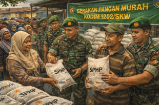 SINGKAWANG — Lonjakan harga kebutuhan pokok mendorong warga Singkawang berburu beras murah pada Sabtu (31/01/2026). Sejak pagi, puluhan warga memadati kawasan Jalan Trisula, Kelurahan Bukit Batu, Kecamatan Singkawang Tengah, menyusul digelarnya Gerakan Pangan Murah oleh Kodim 1202/Singkawang. Program tersebut menghadirkan ratusan kilogram beras dengan harga terjangkau untuk masyarakat. Total sebanyak …