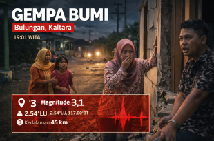 BULUNGAN – Aktivitas gempa bumi tektonik kembali dirasakan warga di wilayah Kabupaten Bulungan, Kalimantan Utara, Jumat (23/01/2026) malam. Gempa dengan kekuatan magnitudo 3,1 tersebut terjadi sekitar pukul 19.01 WITA dan sempat dirasakan oleh sebagian masyarakat di Tanjung Selor. Berdasarkan hasil analisis terbaru Badan Meteorologi, Klimatologi, dan Geofisika (BMKG), pusat gempa …