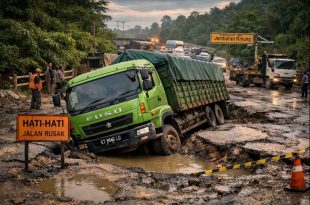 KUTAI BARAT – Kerusakan parah Jalan Nasional yang melintasi Kampung Jengan Danum, Kecamatan Damai, Kabupaten Kutai Barat, kembali memicu gangguan serius bagi pengguna jalan. Sebuah truk fuso bermuatan material terjebak di lubang besar yang menganga di badan jalan, tepatnya di sekitar Jembatan Kinung, pada Sabtu, (10/01/2025) Hingga sore hari, kendaraan …