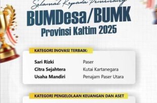 KUTAI KARTANEGARA – Prestasi membanggakan kembali diraih oleh desa-desa di Kukar! Dua Badan Usaha Milik Desa (BUMDes) binaan Dinas Pemberdayaan Masyarakat dan Desa (DPMD) Kutai Kartanegara sukses menorehkan prestasi gemilang dalam ajang Penilaian BUMDesa/BUMK Provinsi Kalimantan Timur tahun 2025. BUMDes Pelangi Muai dari Desa Muai menyabet juara pertama kategori Pengelolaan …