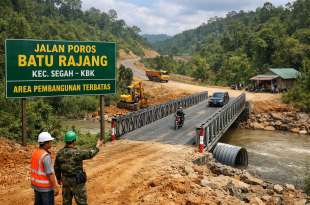 BERAU – Upaya Pemerintah Kabupaten Berau membuka keterisolasian wilayah pedalaman kembali dihadapkan pada persoalan klasik: benturan antara kebutuhan infrastruktur dan aturan tata kelola kawasan hutan. Kondisi ini terlihat nyata pada penanganan Jalan Poros Batu Rajang di Kecamatan Segah, yang hingga kini belum dapat dituntaskan secara permanen karena sebagian ruasnya masih …