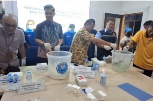TARAKAN – Badana Narkotika Nasional Provinsi (BNNP) Kalimantan Utara kembali menunjukkan sikap tegas terhadap peredaran narkoba dengan memusnahkan barang bukti sabu-sabu seberat lebih dari 1 kilogram yang dikendalikan oleh tersangka SY alias Boneng. Kurir narkoba ini ditangkap saat turun dari Speedboat Sadewa Gemilang di Pelabuhan Tengkayu I, Tarakan, Kamis (23/10/2025) …