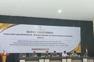 BALIKPAPAN – Dewan Perwakilan Rakyat Daerah (DPRD) Kota Balikpapan menggelar rapat paripurna dalam rangka penyampaian Rancangan Peraturan Daerah (Raperda) mengenai Rencana Pembangunan Jangka Menengah Daerah (RPJMD) Tahun 2025–2029, Kamis (24/07/2025). Rapat tersebut dipimpin Ketua DPRD Kota Balikpapan, Alwi Al-Qadri, bersama para wakil ketua DPRD serta dihadiri Sekretaris Daerah (Sekda) Kota …
