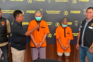 TANAH BUMBU – Dua pria berinisial HK (26) dan AM (23), yang terlibat dalam kasus video pornografi sesama jenis, dihadirkan dalam konferensi pers yang digelar di Pendopo Markas Kepolisian Resor (Mapolres) Tanah Bumbu, Selasa (17/06/2025). Keduanya merupakan pemeran dalam video berdurasi satu menit yang memuat adegan hubungan badan sesama jenis. …