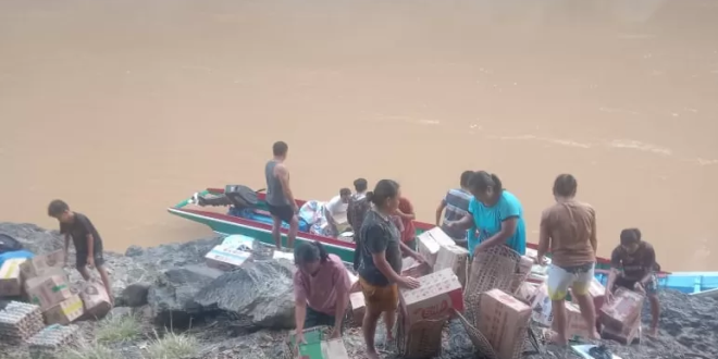 Sembako Pedalaman Nunukan Dikirim Lewat Arus Sungai Berbahaya