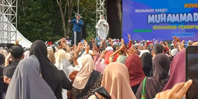 KOTAWARINGIN TIMUR – Ribuan warga Kotawaringin Timur (Kotim) memadati Stadion 29 November, Sabtu (06/09/2025), untuk mengikuti gelar seni dan syiar bertema “Menginspirasi Jiwa Lewat Syair dan Doa”. Acara yang digagas Yayasan Ma’had Al-Arafah Sampit ini menghadirkan penyanyi religi ternama, Haddad Alwi, sekaligus menjadi ruang kebersamaan masyarakat dalam memperkuat keimanan.