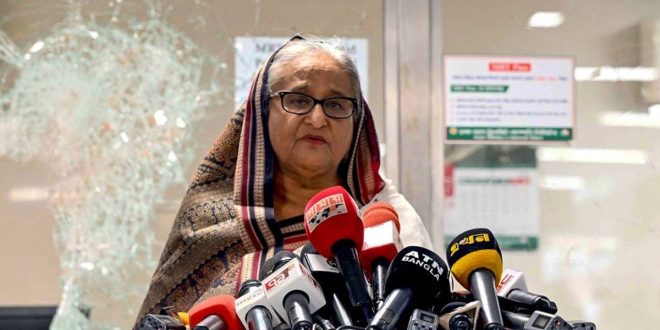 Hasina kabur ke India menggunakan helikopter pada 5 Agustus 2024 setelah berminggu-minggu menghadapi demonstrasi mahasiswa yang menuntut diakhirinya pemerintahannya yang dianggap otoriter.