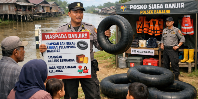 Polsek Banjang mengingatkan masyarakat agar menyiapkan langkah antisipasi sejak dini sebagai bentuk kesiapsiagaan menghadapi kemungkinan kenaikan air secara mendadak. Salah satu upaya darurat yang dinilai mudah diterapkan adalah memanfaatkan ban mobil bekas sebagai alat pelampung sementara.