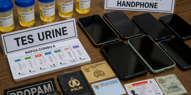 Selain itu, pengujian urine mendadak dilakukan terhadap 12 personel yang dipilih secara acak. Pemeriksaan menggunakan alat Napza Combo 6 untuk mendeteksi enam jenis zat narkotika, yakni amphetamine, methamphetamine, tetrahydrocannabinol (THC), cocaine, opiate, dan benzodiazepine. Hasilnya, seluruh personel dinyatakan negatif narkoba.