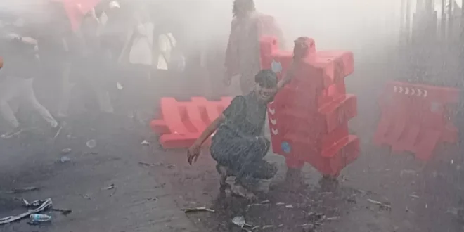 Aksi sempat diwarnai ketegangan antara massa dan kepolisian. Berulang kali kendaraan water canon digunakan untuk menghalau massa yang berusaha merangsek masuk ke Mapolda Kalteng.