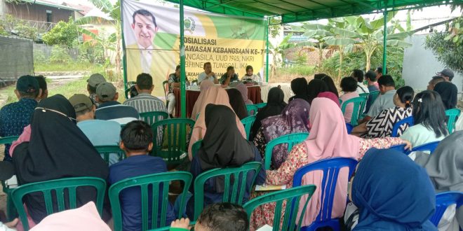 “Pesan saya bagaimana menjaga toleransi, keberagaman ini dan kita satu anak bangsa, kita lihat yang ada di Ukraina sama Palestina selalu berperang,” kata anggota Komisi II DPRD Provinsi Kaltim Sapto Setyo Pramono saat menggelar Sosialisasi Wawasan Kebangsaan (Sosbang) kepada warga di Jalan Soekarno Hatta, Kelurahan Simpang Tiga, Kecamatan Loa Janan Ilir, Samarinda. Sabtu (25/11/2023).