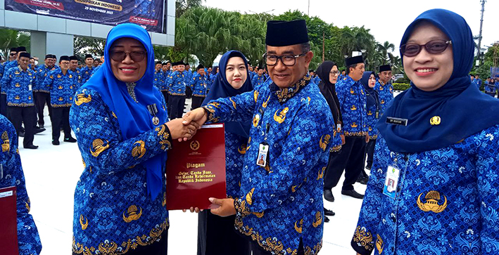 Dalam kesempatan yang sama Pj Gubernur dengan didampingi oleh Sekretaris Daerah (Sekda) Sri Wahyuni menyerahkan penghargaan Satya Lencana Karya Satya 10, 20 dan 30 tahun kepada ASN di lingkup Pemerintah Provinsi Kaltim. Penghargaan itu merupakan bentuk apresiasi atas kinerja, pengabdian dan loyalitas yang diberikan secara terus menerus tanpa cacat.