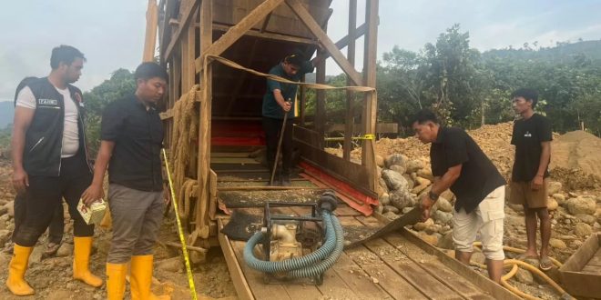 Di lokasi tersebut, polisi menemukan satu unit sluice box yang terpasang di aliran sungai, sejumlah pondok pekerja, serta berbagai peralatan tambang ilegal. Seluruh barang bukti langsung diamankan, area dipasangi garis polisi, dan pondok-pondok penambang dibongkar untuk mencegah aktivitas kembali berulang. “Kami mengamankan mesin alkon, selang plastik dan spiral, karpet penyaring emas, jeriken berisi solar, lenggangan, van belt, terpal, hingga linggis,” ungkapnya.