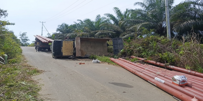 SEKADAU — Sebuah truk pengangkut tiang listrik dilaporkan terguling di Jalan Poros Desa Tembesuk, Kecamatan Nanga Mahap, Rabu (11/02/2026) sekitar pukul 07.00 WIB. Peristiwa itu terjadi ketika kendaraan bermuatan berat tersebut berusaha melewati jalur menanjak.