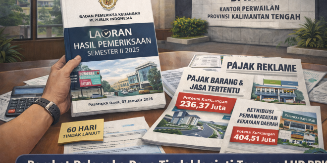 PALANGKA RAYA – Wali Kota Palangka Raya, Fairid Naparin, menegaskan Pemerintah Kota segera menindaklanjuti 11 temuan dan 21 rekomendasi dari Badan Pemeriksa Keuangan Republik Indonesia (BPK RI) terkait Laporan Hasil Pemeriksaan (LHP) Semester II 2025. Penegasan ini disampaikan usai penyerahan LHP di Kantor BPK RI Provinsi Kalteng, Rabu (07/01/2026).