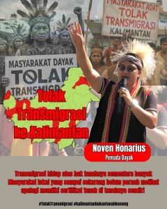 “Transmigrasi ini merupakan salah satu bentuk penjajahan terhadap masyarakat, terutama masyarakat Dayak yang tinggal di pedalaman. Transmigran difasilitasi hak atas tanah, sementara jutaan masyarakat pribumi bahkan belum melihat apalagi memiliki sertifikat atas tanah tempat mereka hidup selama puluhan tahun,” tegas Noven.