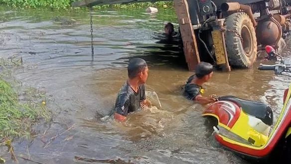 Peristiwa itu terjadi saat truk mengangkut sejumlah penumpang sekaligus sepeda motor milik warga yang hendak melintas di tengah genangan air yang cukup dalam. Truk tersebut sebelumnya difungsikan sebagai alternatif transportasi karena banyak ruas jalan tidak dapat dilalui kendaraan roda dua.