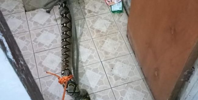 BANJARBARU – Kejadian tak biasa menggegerkan warga Kelurahan Loktabat Utara, Banjarbaru Utara, Sabtu (19/04/2025) dini hari. Seekor ular sanca sepanjang dua meter muncul di dinding kamar mandi sebuah rumah bedakan yang dihuni Afi Muzadi, warga Jalan Karang Anyar 1, RT 18 RW 08.