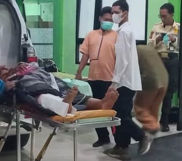 Theresia Padang, warga RT 7 Kelurahan Karang Harapan, tiba di rumah sakit dalam kondisi mengalami luka serius pada bagian kaki kanan. Sejak sore hingga malam hari, pihak keluarga tampak silih berganti mendampingi korban yang masih merasakan nyeri hebat pasca-insiden mengerikan tersebut.