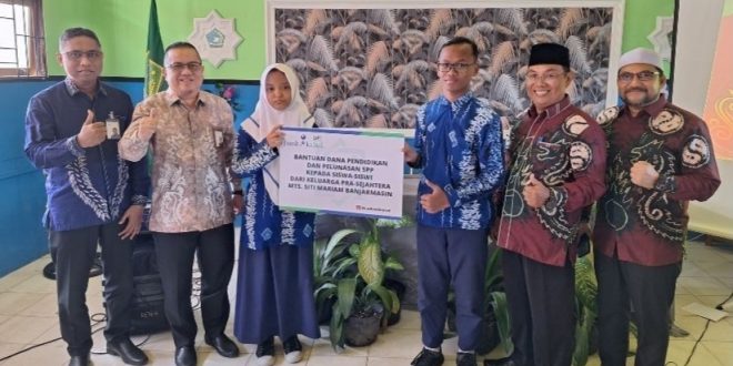 BANJARMASIN – Unit Pengumpul Zakat (UPZ) Bank Kalsel memberikan bantuan biaya pendidikan sampai lulus sekolah kepada 24 Siswa dan siswi yatim piatu dan yang kurang mampu di MTs Siti Mariam Banjarmasin. Salah satu tujuan nasional sebagaimana tercantum dalam Pembukaan Undang-Undang Dasar 1945 adalah mencerdaskan kehidupan bangsa. Hal ini sebagai upaya untuk meningkatkan Sumber Daya Manusia yang handal dan siap pakai untuk terjun ke masyarakat atau pemerintah.
