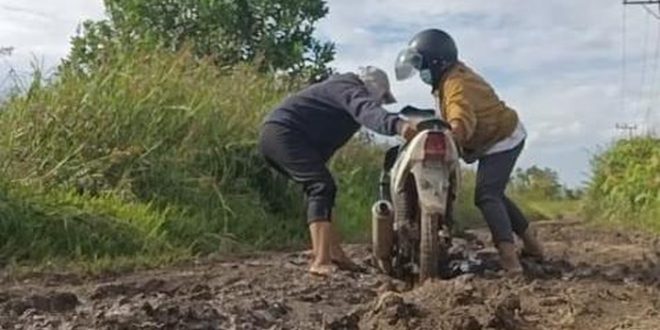 “Lelah!” begitu kata pertama yang terucap dari mulut Devi saat menceritakan perjuangannya menuju tempat kerja, Sabtu (01/11/2025). “Karena saat cuaca hujan ketika berangkat kerja jalannya rusak, berlumpur,” lanjutnya dengan nada pasrah.