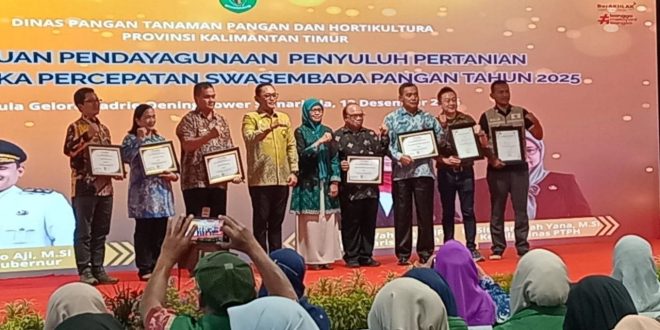 SAMARINDA – Wakil Gubernur Kalimantan Timur (Kaltim), Seno Aji, secara resmi membuka Pertemuan Pendayagunaan Penyuluh Pertanian dalam Rangka Percepatan Swasembada Pangan 2025 yang digelar di Aula Gelora Kadrie Oening Tower, Sempaja Selatan, Samarinda, Jumat (12/12/2025). Kegiatan tersebut menjadi momentum penting dalam memperkuat peran penyuluh pertanian sebagai ujung tombak pembangunan sektor pangan di daerah.