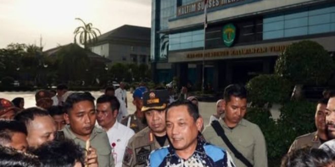 SAMARINDA – Wakil Gubernur Kalimantan Timur (Wagub Kaltim), H. Seno Aji, menerima langsung perwakilan mahasiswa dari Aliansi Mahasiswa Kaltim Menggugat yang menggelar aksi damai di halaman Kantor Gubernur Kaltim, Jalan Gajah Mada, Samarinda, pada Rabu (04/06/2025). Aksi tersebut berlangsung tertib dan aman dengan pengawalan dari aparat keamanan serta Satuan Polisi Pamong Praja (Satpol PP).