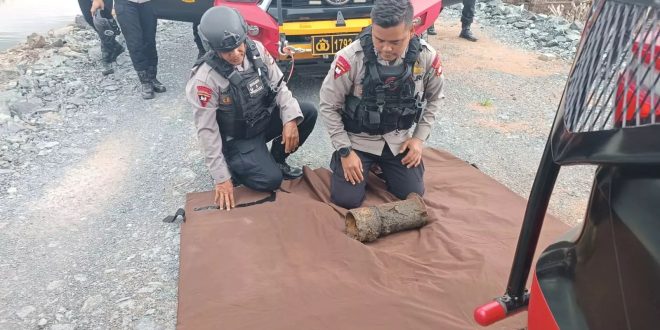 BANJARBARU – Kompleks Benawa Raya, Kelurahan Guntung Manggis, Banjarbaru, digegerkan penemuan benda mencurigakan yang diduga proyektil oleh pekerja konstruksi, Minggu (6/7/2025) sore. Benda sepanjang 47 cm dan diameter 25 cm itu ditemukan saat tukang bangunan menggali pondasi rumah milik Anisa Mahmudah (28). “Tukang yang menemukan benda mencurigakan itu langsung melaporkan kepada pengawas proyek. Sedangkan laporan resmi ke Polsek Liang Anggang diterima, Senin (7/6),” jelas Kapolsek Kompol Imam Suryana mewakili Kapolres Banjarbaru AKBP Pius X Febry Aceng Loda.