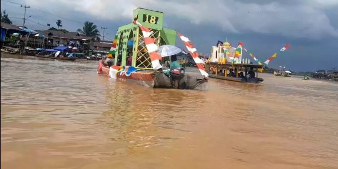 SAMBAS – Festival Perahu Hias Turun Sungai Berobat Kampung kembali digelar di Desa Tengguli, Kecamatan Sajad, Kabupaten Sambas, Jumat (27/06/2025). Kegiatan yang rutin dilaksanakan ini menjadi bagian dari peringatan Tahun Baru Islam 1 Muharram 1447 Hijriah dan diikuti oleh sekitar 30 perahu yang menghiasi sungai dengan aneka dekorasi dan ornamen khas.