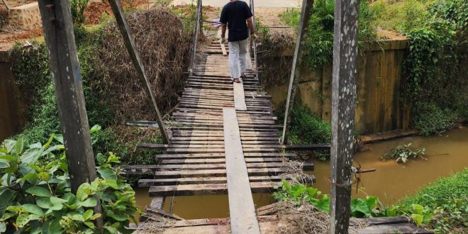Warga Terjatuh, Jembatan Kayu Masih Digunakan
